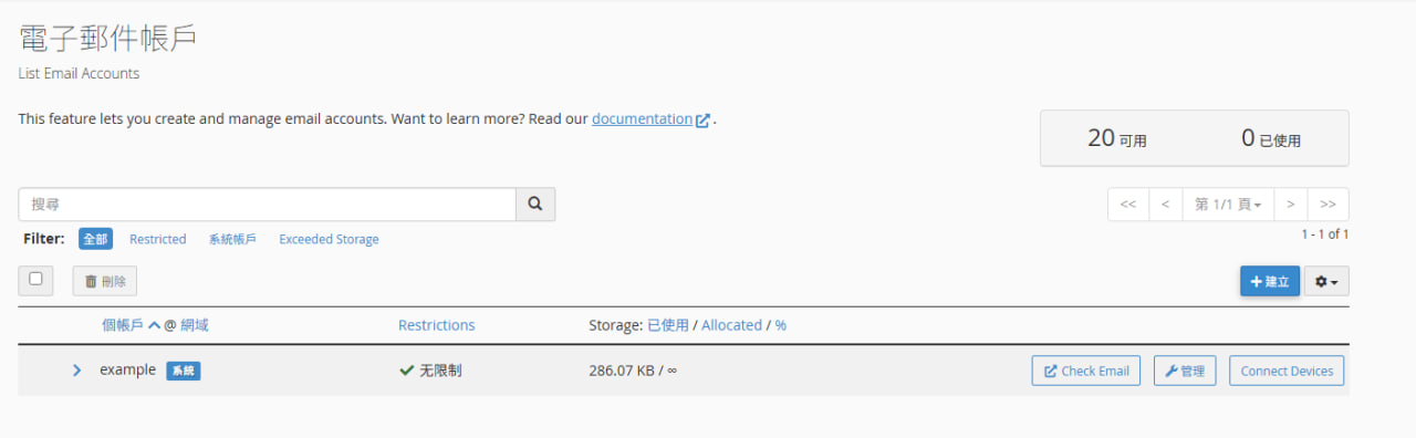 要讓 WordPress 使用 SMTP 寄信,你需要有一個正式的寄件信箱。這可以在 cPanel 的「Email Accounts」中建立。