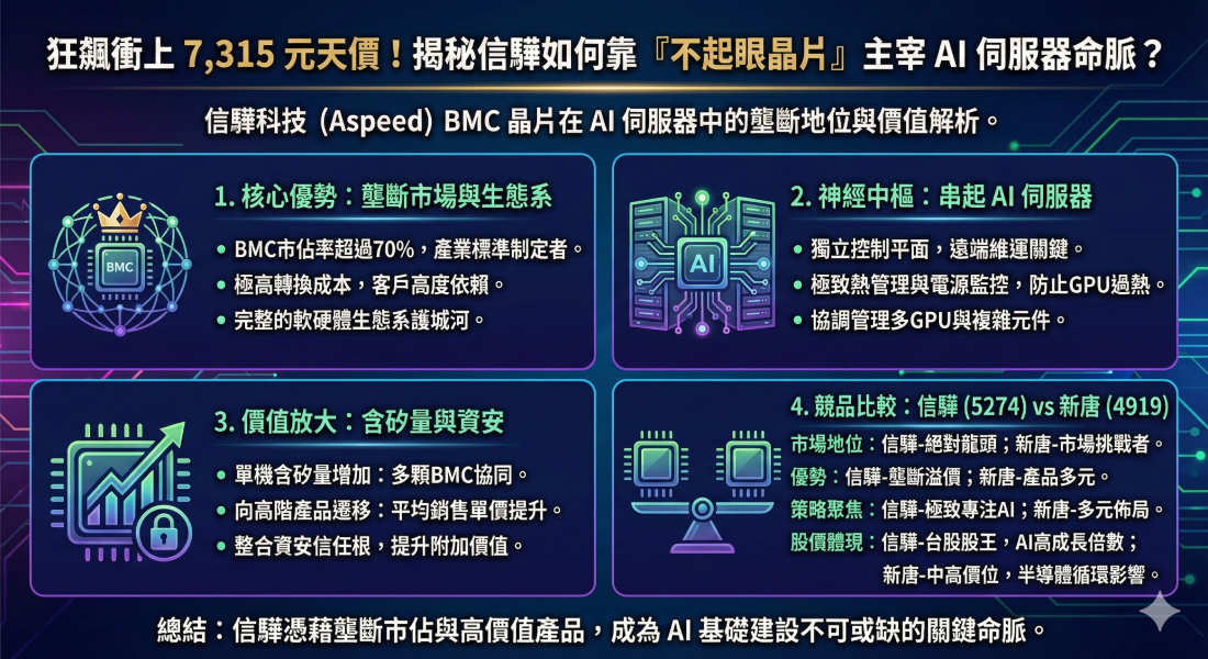 - 信驊專注於高階 BMC 與 AI 伺服器, 是「單一關鍵節點」的極致受益者。