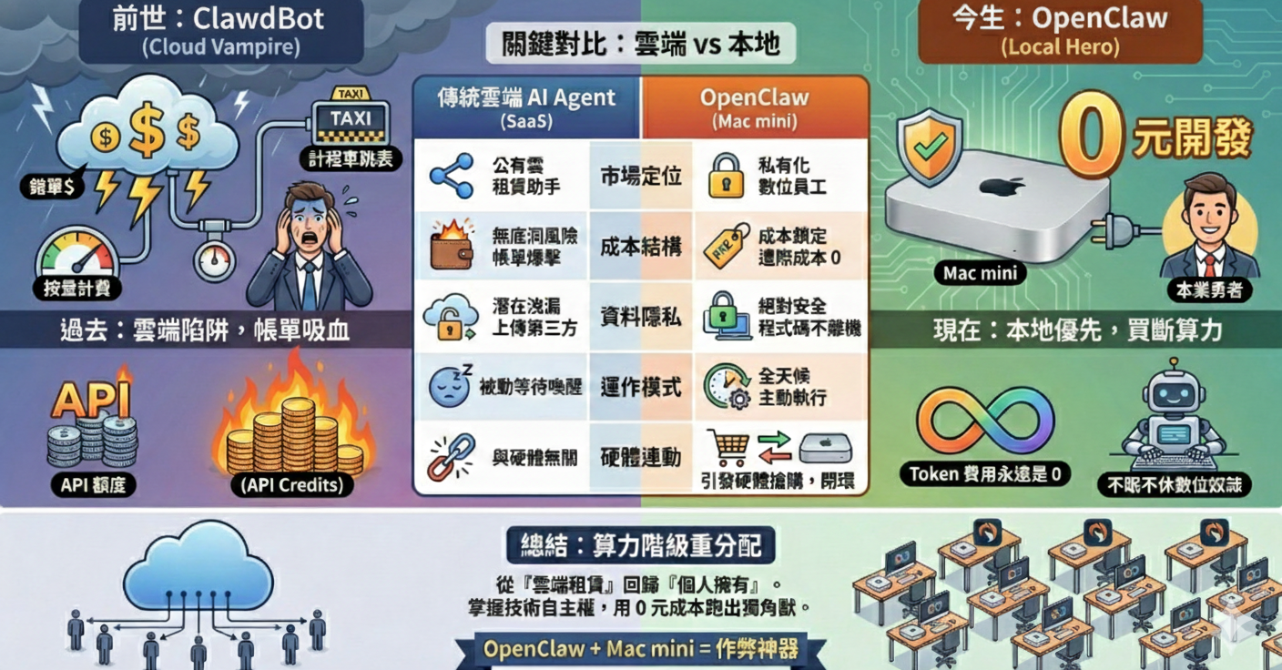 原本只在開發者社群小眾流傳的 AI 寫程式工具 「ClawdBot」,在正式更名為 「OpenClaw」 之後,下載量瞬間暴衝、官網癱瘓,連帶讓蘋果官網與各大通路的 Mac mini 在數小時內全面顯示「售罄」。